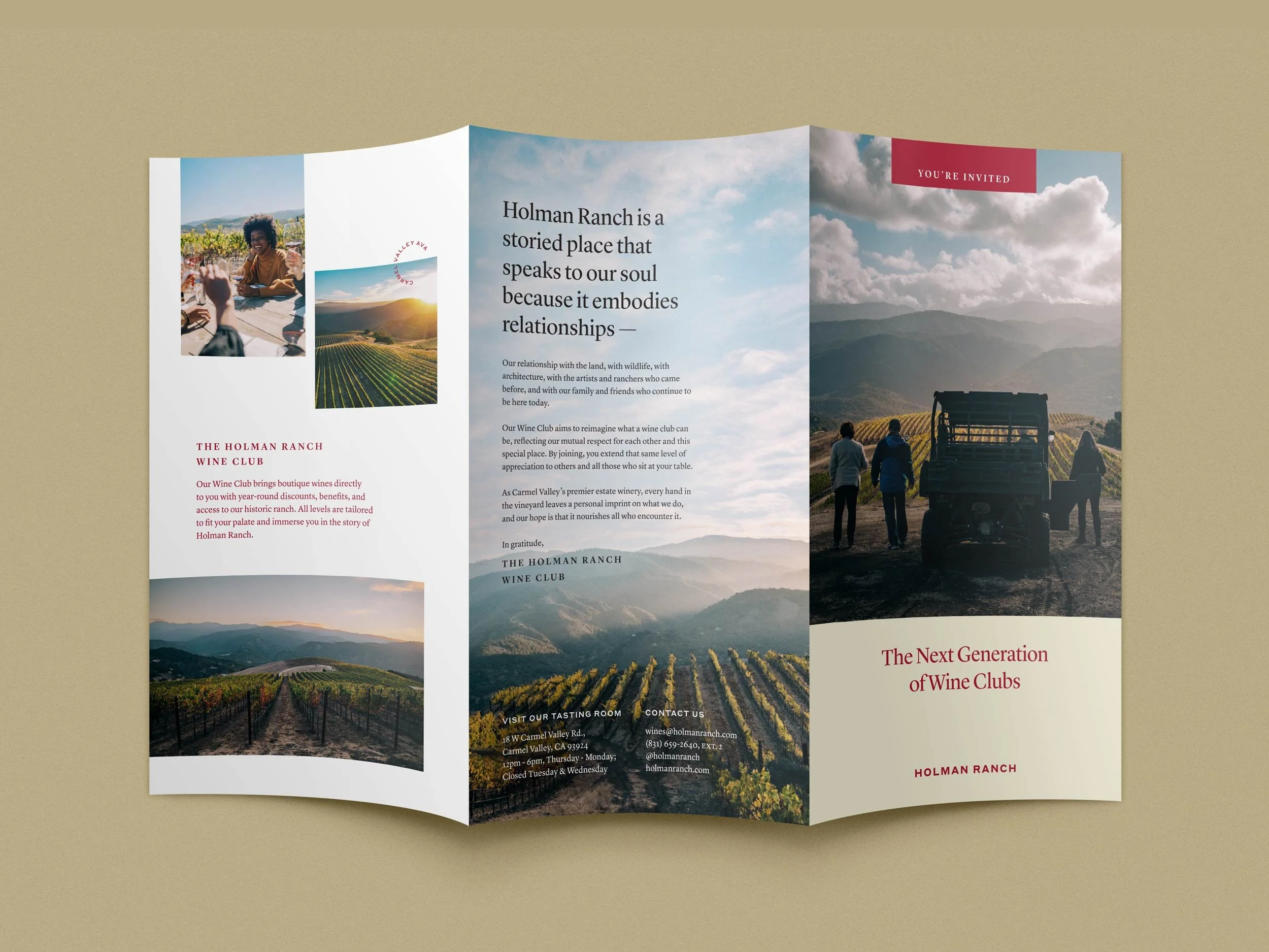 A refreshed typography system, custom Squarespace website and collateral for an award-winning winery in Carmel Valley, California.